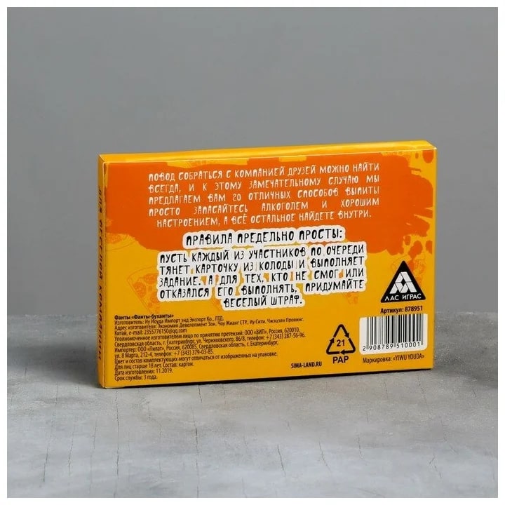Купить игра для компании "фанты буханты" 20 карт от 100 руб. с доставкой до пункта выдачи в Тосно. Интернет магазин ДекаМаркет. Оплата при получении.