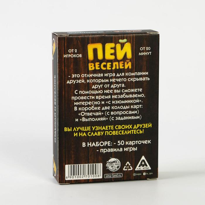 Купить игра для компании "пей веселей" 50 карт от 180 руб. с доставкой до пункта выдачи в Тосно. Интернет магазин ДекаМаркет. Оплата при получении.