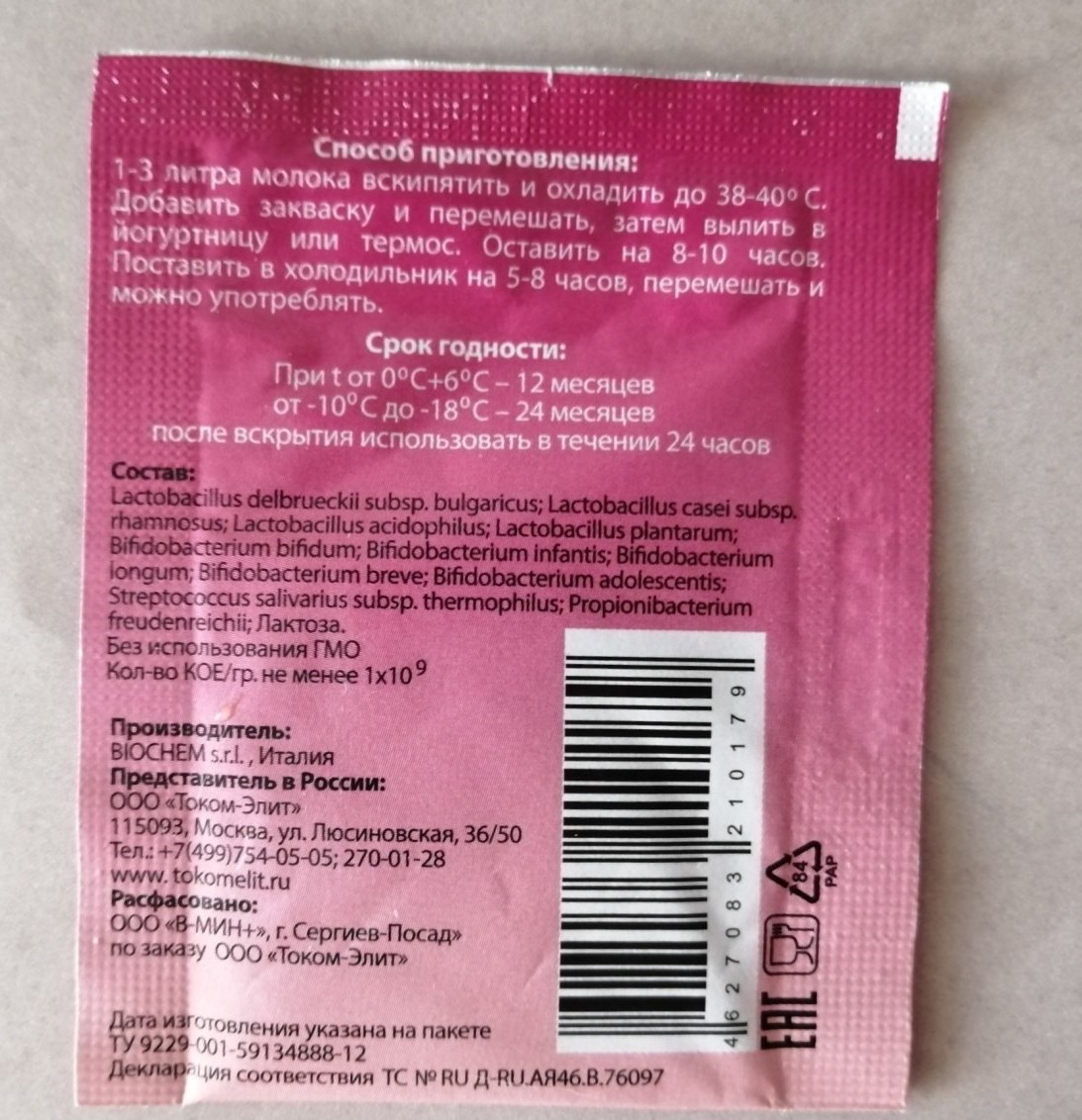 Закваска рассчитана на приготовление 1-3 литра продукта. При приготовлении 1-ого, 2-ух или 3-х литров готового продукта концентрация полезных бактерий в 1 мл будет одинаково высокая.